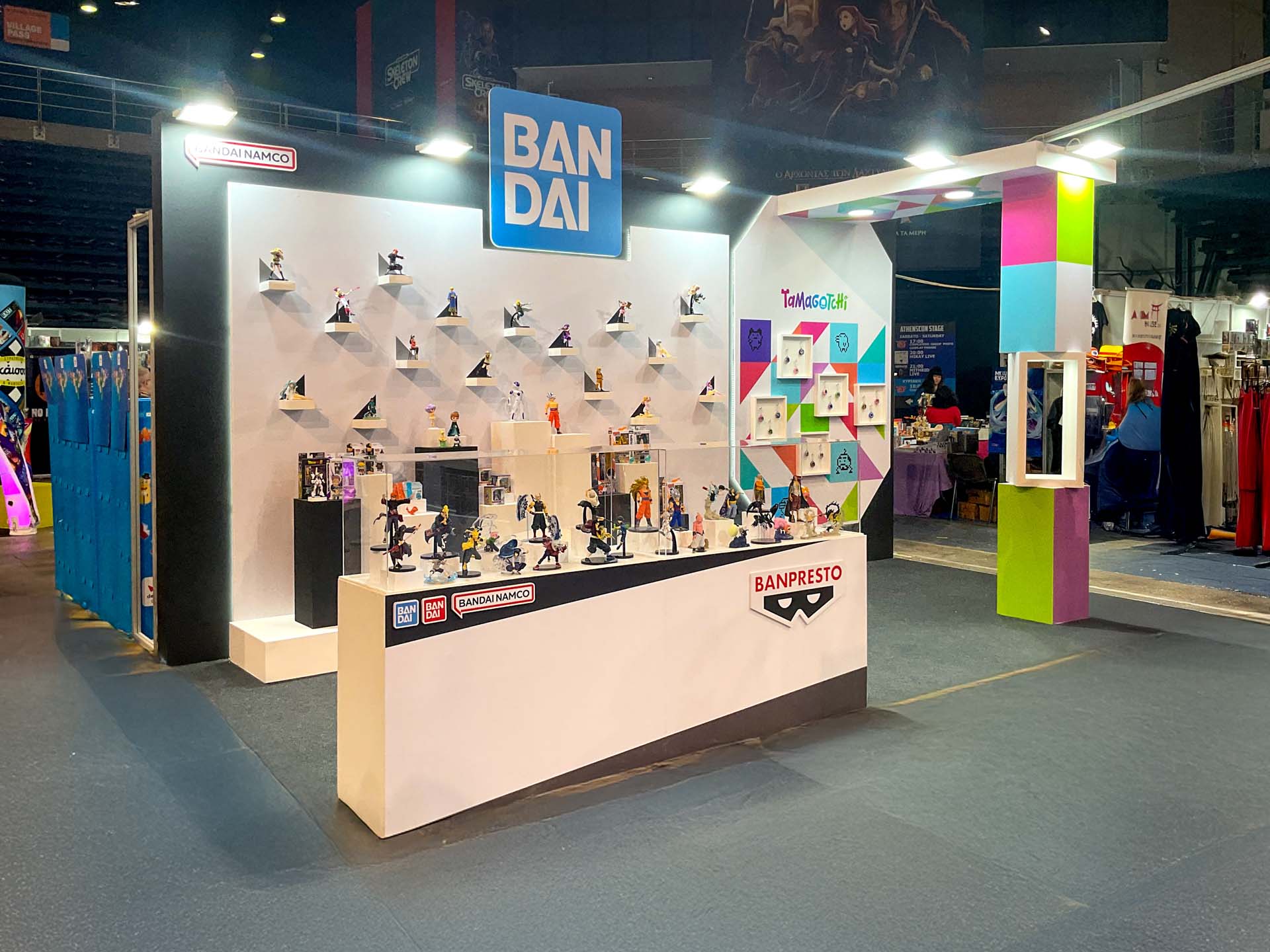Η Bandai είναι παγκόσμιος ηγέτης στα παιχνίδια, collectibles και pop culture merchandise. Η Plouto ανέλαβε τον σχεδιασμό και την κατασκευή του εκθεσιακού περιπτέρου της Bandai, δημιουργώντας μία δυναμική παρουσία με έμφαση στην αισθητική, τη λειτουργικότητα και την προβολή των προϊόντων και υπηρεσιών της εταιρείας στο κοινό.