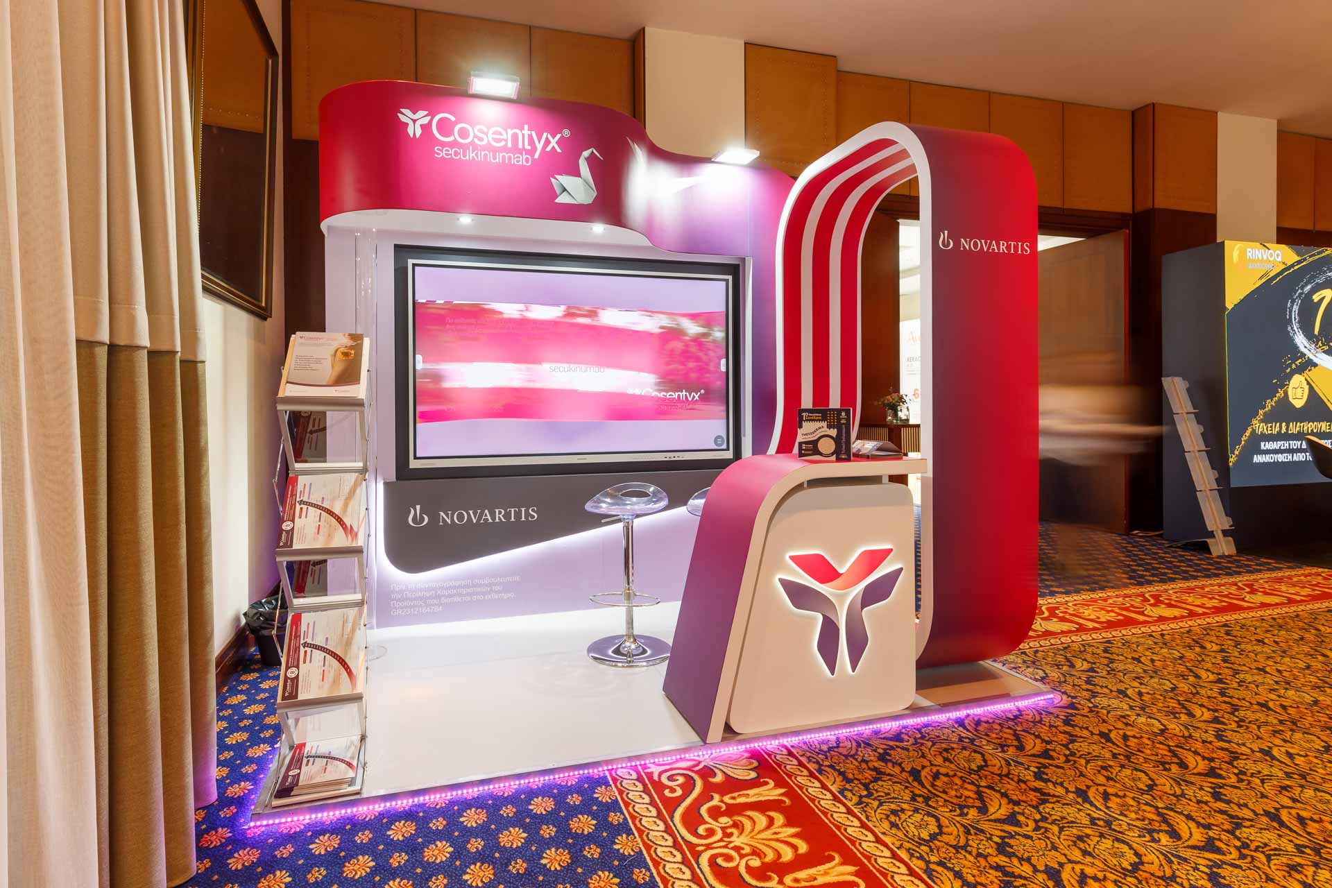 Η Plouto σχεδίασε και κατασκεύασε συνεδριακό περίπτερο για την Novartis, δίνοντας προτεραιότητα στην ευκρινή τοποθέτηση μηνυμάτων, στην εργονομία υποδοχής/συναντήσεων και στη φορητότητα/ταχεία εγκατάσταση για συνέδρια.